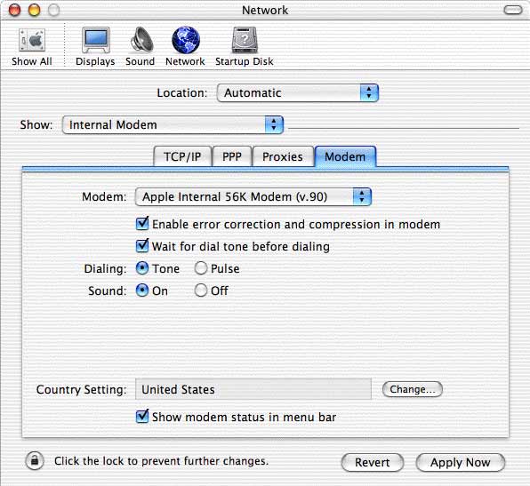 Click the arrow box on the Modem pop-up list and choose your modem (e.g. Apple Internal 56K Modem (v.90) for Macs with built-in modems).