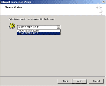 - Select the Modem you wish to connect with. If you have only one modem installed this will already be chosen - if not, simply click on the down arrow to see a list of installed modems.