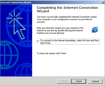 - Do not check the "To connect to the internet immediately.." box, as you have not quite finished setting up the connection yet.