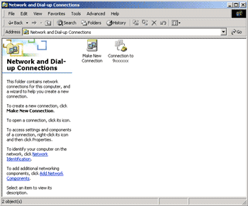 - In the Network and Dial-up Connections panel, a new icon will now have appeared which will have the name you gave your connection in Step 9.