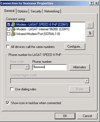- When the Connection to ISP Properties panel opens, you can see the modems installed on your computer, and thus also the modems you can choose to dial with.