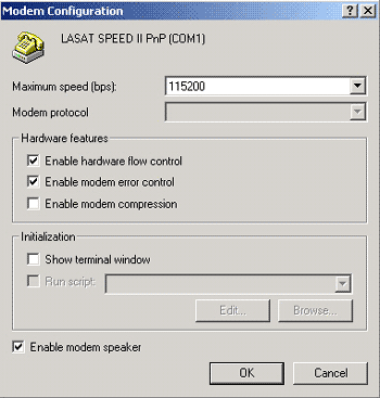 - Make sure that Enable Modem Compression is deselected , and that your hardware settings are as below.