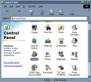 | [Step 2:] In Control Panel find the Modems icon and double-click it |