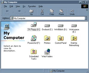 [Step 4:] Go to your desktop and double-click the icon My Computer to open a window containing an overview of your system drives (3½ Floppy, C:, CD-ROM, etc), as well as the system icons.