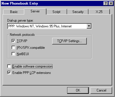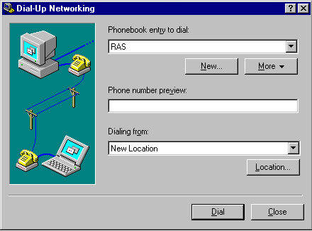 [Step 3:] If this is not the first time you have created a Dial-Up Networking connection, then you will see the 'Phonebook entry' screen immediately. Press the New button.