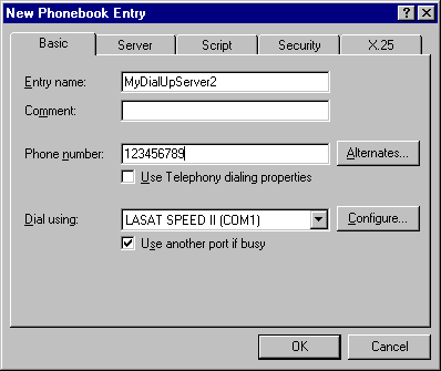 Enter an 'Entry name' (MyDialUpServer2, in this example)