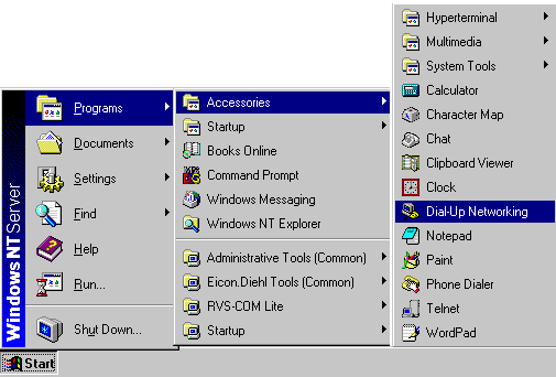 [Step 1:] Select 'Dial-Up Networking' from the Windows NT 'Start' Menu