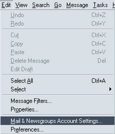 From the Edit menu, choose Mail & Newsgroups Account Settings .