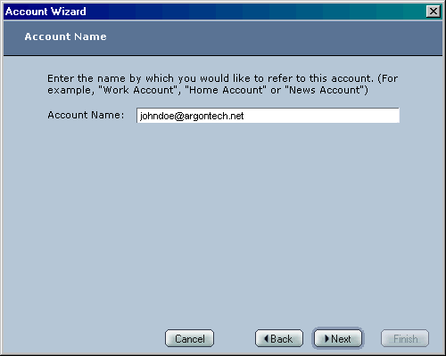 In the Account Name field, type your full email address (e.g., johndoe@argontech.net ).